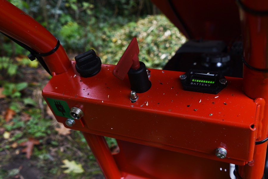 Het zelfrijdende aandrijfsysteem maakt deze hakselaar uniek. Met snelheden tot 6 km/u vooruit en 3 km/u achteruit, aangedreven door twee 12V-accu’s, is de machine eenvoudig te verplaatsen, zelfs op moeilijk terrein. Stevige luchtbanden achter en zwenkwielen voor zorgen voor optimale stabiliteit en wendbaarheid.