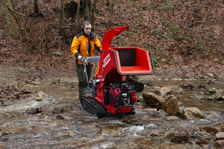 Het rupsonderstel maakt deze hakselaar ideaal voor ruw terrein en hellingen tot 20ยฐ. Met drie versnellingen vooruit en รฉรฉn achteruit, en een maximale snelheid van 3,7 km/u, is de machine eenvoudig te manoeuvreren. De brede rupsbanden bieden uitstekende stabiliteit en grip, zelfs op moeilijk begaanbare ondergronden.